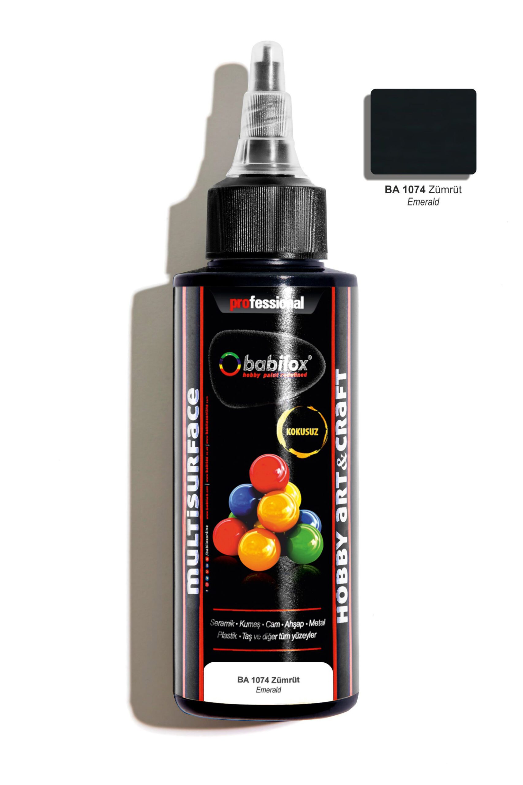 Babilox Multisurface (Ahşap) hobi boyası, sanatsal ve dekorasyonda kullanılan su bazlı zanaat ve sanat boyasıdır. Bu yelpazedeki canlı renkler dayanıklı, pürüzsüz yüzey, güvenli ve kullanımı kolay olduğundan, gelecek vadeden zanaatkarlar ile sanatçılar için mükemmeldir. Yumuşak ve sert tüm ahşap yüzeyler, kapı, pencere, ahşap bahçe mobilyaları ve diğer ahşap malzemelerde tuval, canvas pad, kağıt tabakalar, metal, porselen, seramik, polyester ve cam yüzeylerde dekoratif amaçla kullanılır.