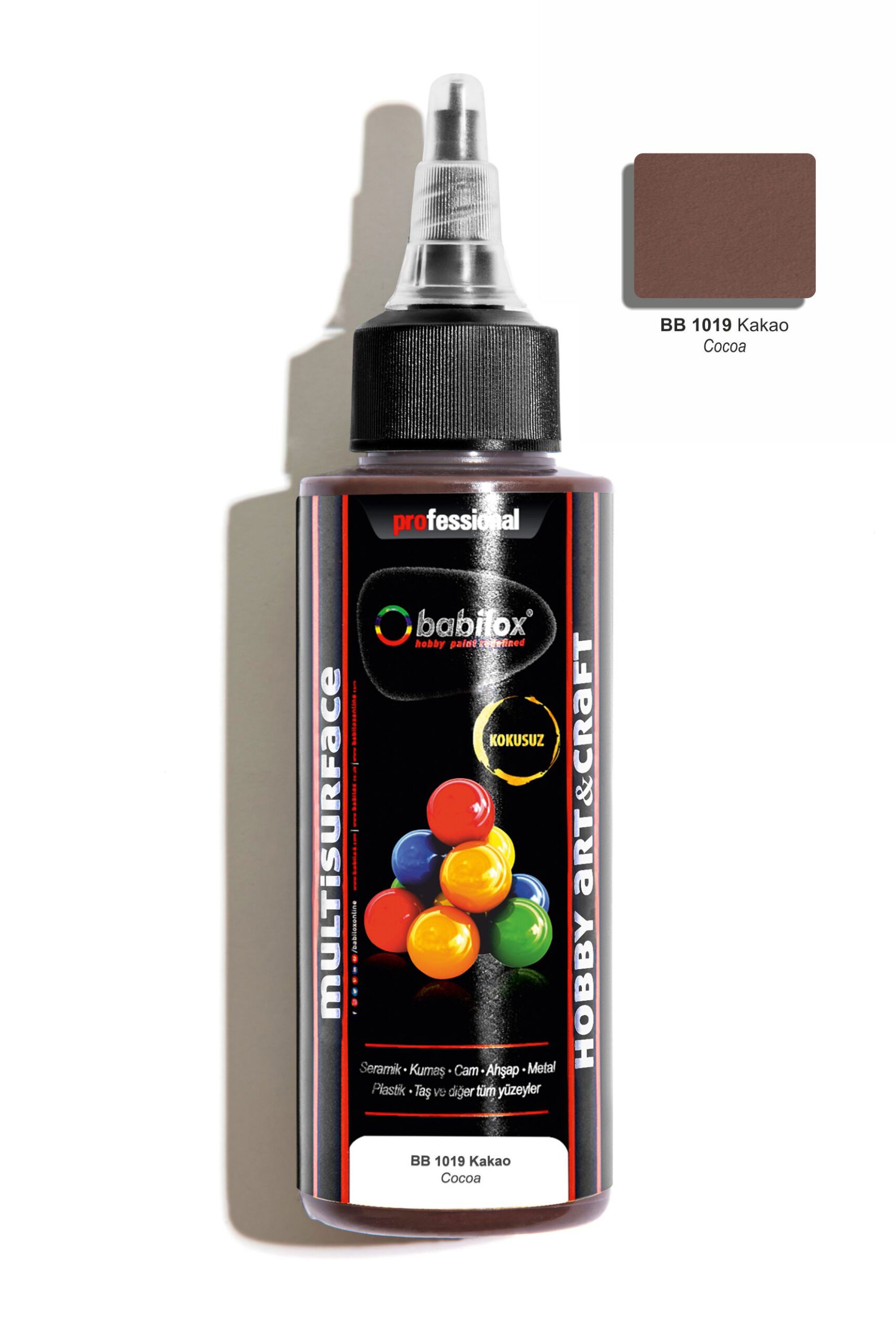 Babilox Multisurface (Akrilik) hobi boyası, sanatsal ve dekorasyonda kullanılan su bazlı zanaat ve sanat boyasıdır. Bu yelpazedeki canlı renkler dayanıklı, pürüzsüz yüzey, güvenli ve kullanımı kolay olduğundan, gelecek vadeden zanaatkarlar ile sanatçılar için mükemmeldir. Yumuşak ve sert tüm ahşap yüzeyler, kapı, pencere, ahşap bahçe mobilyaları ve diğer ahşap malzemelerde tuval, canvas pad, kağıt tabakalar, metal, porselen, seramik, polyester ve cam yüzeylerde dekoratif amaçla kullanılır.