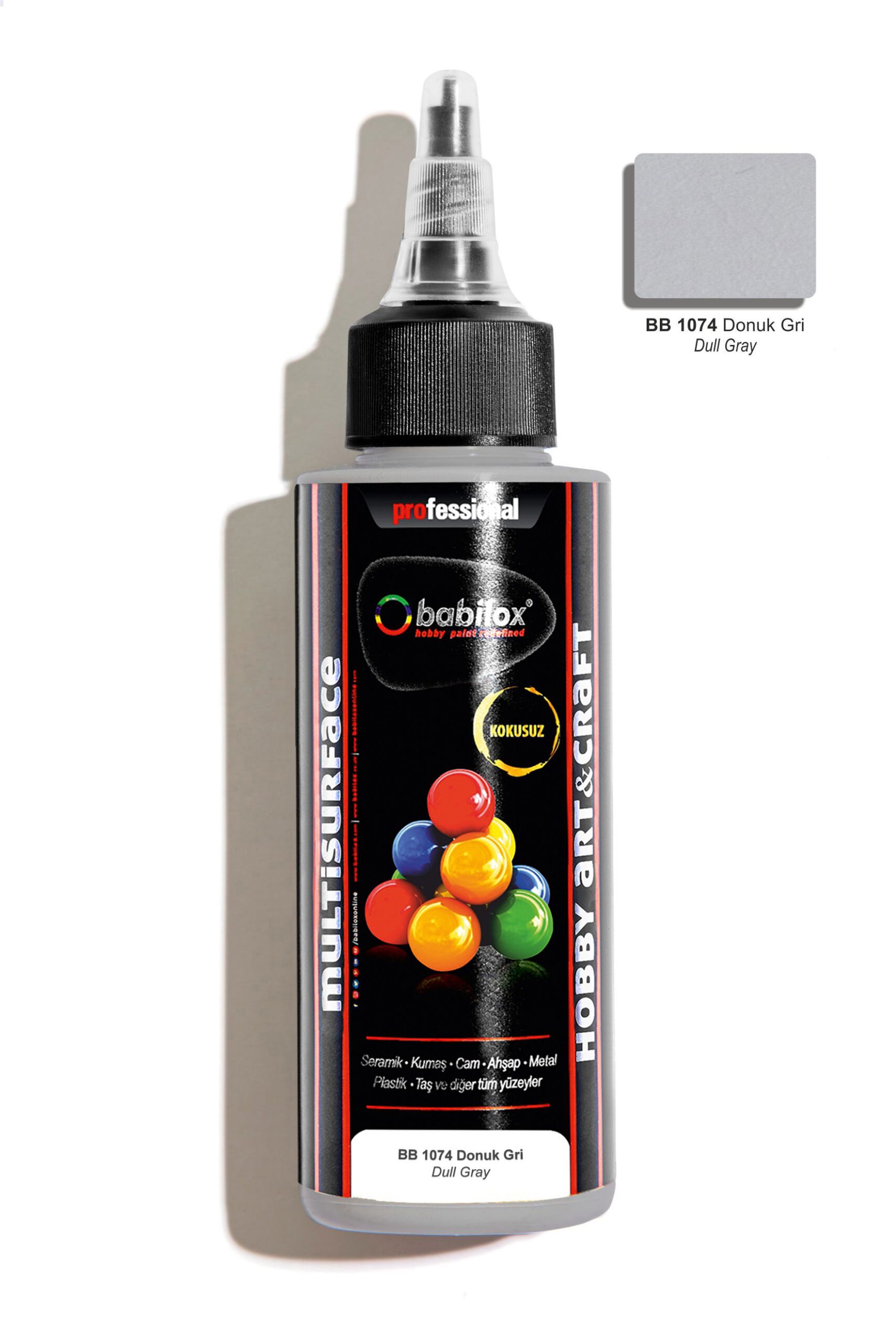 Babilox Multisurface (Akrilik) hobi boyası, sanatsal ve dekorasyonda kullanılan su bazlı zanaat ve sanat boyasıdır. Bu yelpazedeki canlı renkler dayanıklı, pürüzsüz yüzey, güvenli ve kullanımı kolay olduğundan, gelecek vadeden zanaatkarlar ile sanatçılar için mükemmeldir. Yumuşak ve sert tüm ahşap yüzeyler, kapı, pencere, ahşap bahçe mobilyaları ve diğer ahşap malzemelerde tuval, canvas pad, kağıt tabakalar, metal, porselen, seramik, polyester ve cam yüzeylerde dekoratif amaçla kullanılır.