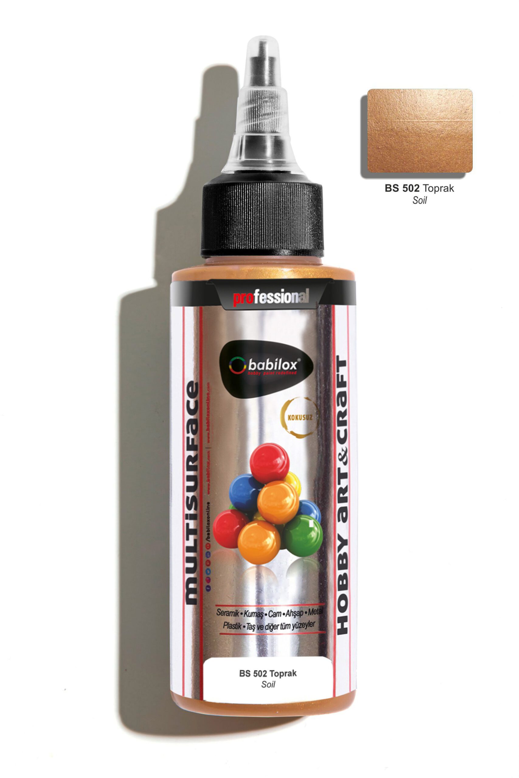 Babilox Multisurface (Sedef) hobi boyası, sanatsal ve dekorasyonda kullanılan parlak görünüm sağlayan su bazlı zanaat ve sanat boyasıdır. Bu yelpazedeki canlı renkler dayanıklı, pürüzsüz yüzey, güvenli ve kullanımı kolay olduğundan, gelecek vadeden zanaatkarlar ile sanatçılar için mükemmeldir. Yumuşak ve sert tüm ahşap yüzeyler, kapı, pencere, ahşap bahçe mobilyaları ve diğer ahşap malzemelerde tuval, canvas pad, kağıt tabakalar, metal, porselen, seramik, polyester ve cam yüzeylerde dekoratif amaçla kullanılır.